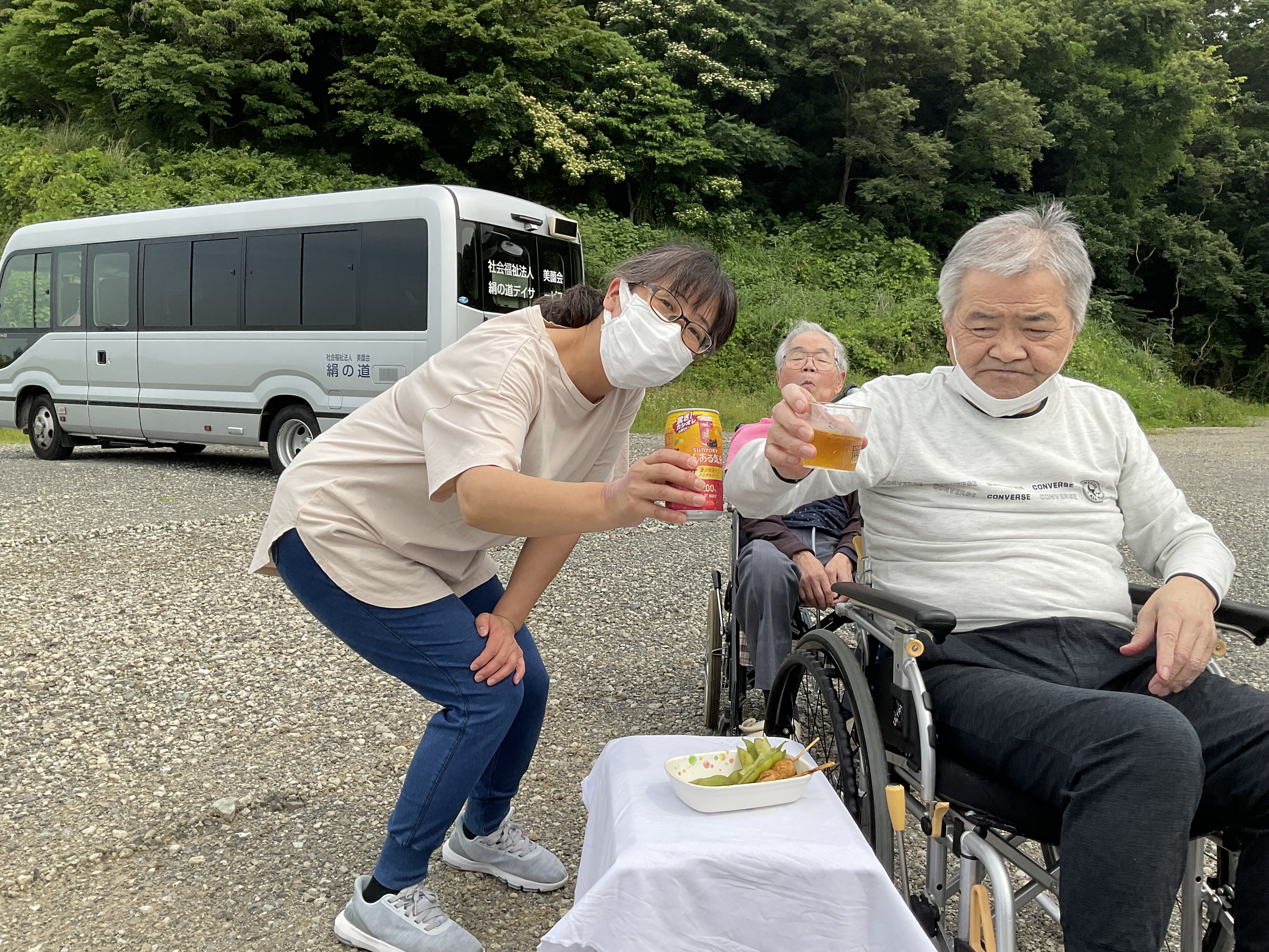 屋外でちょっとした軽食を楽しんでもらいました♪